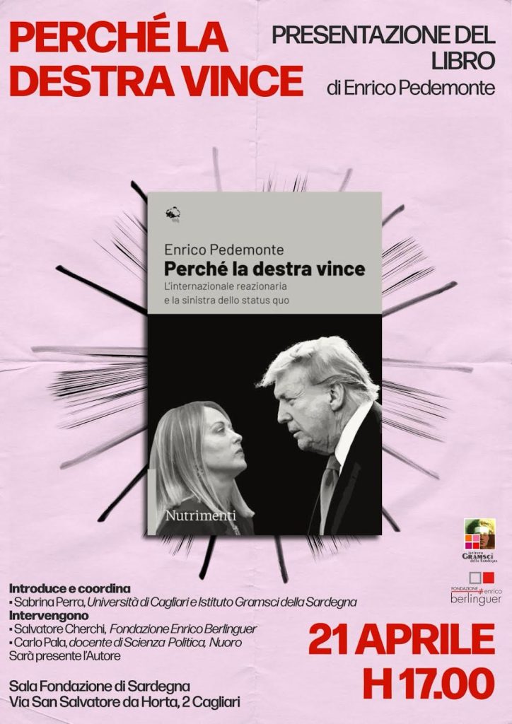 In collaborazione con l'Istituto Gramsci della Sardegna, la FEB ha organizzato un pubblico dibattito sulle tesi del libro "Perché la destra vince. L'Internazionale reazionaria e la sinistra dello status quo" di Enrico Pedemonte, con la partecipazione dell'Autore. L'evento si è svolto il 21 aprile con una buona partecipazione e un ampio dibattito.